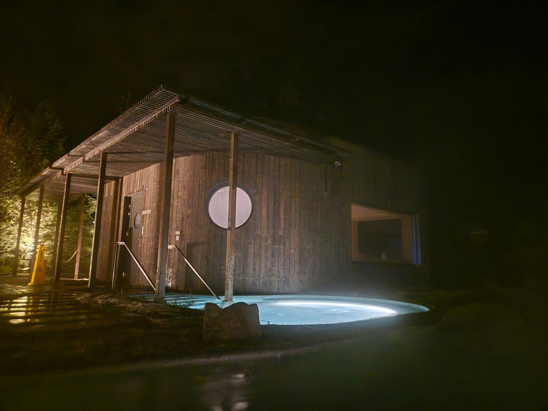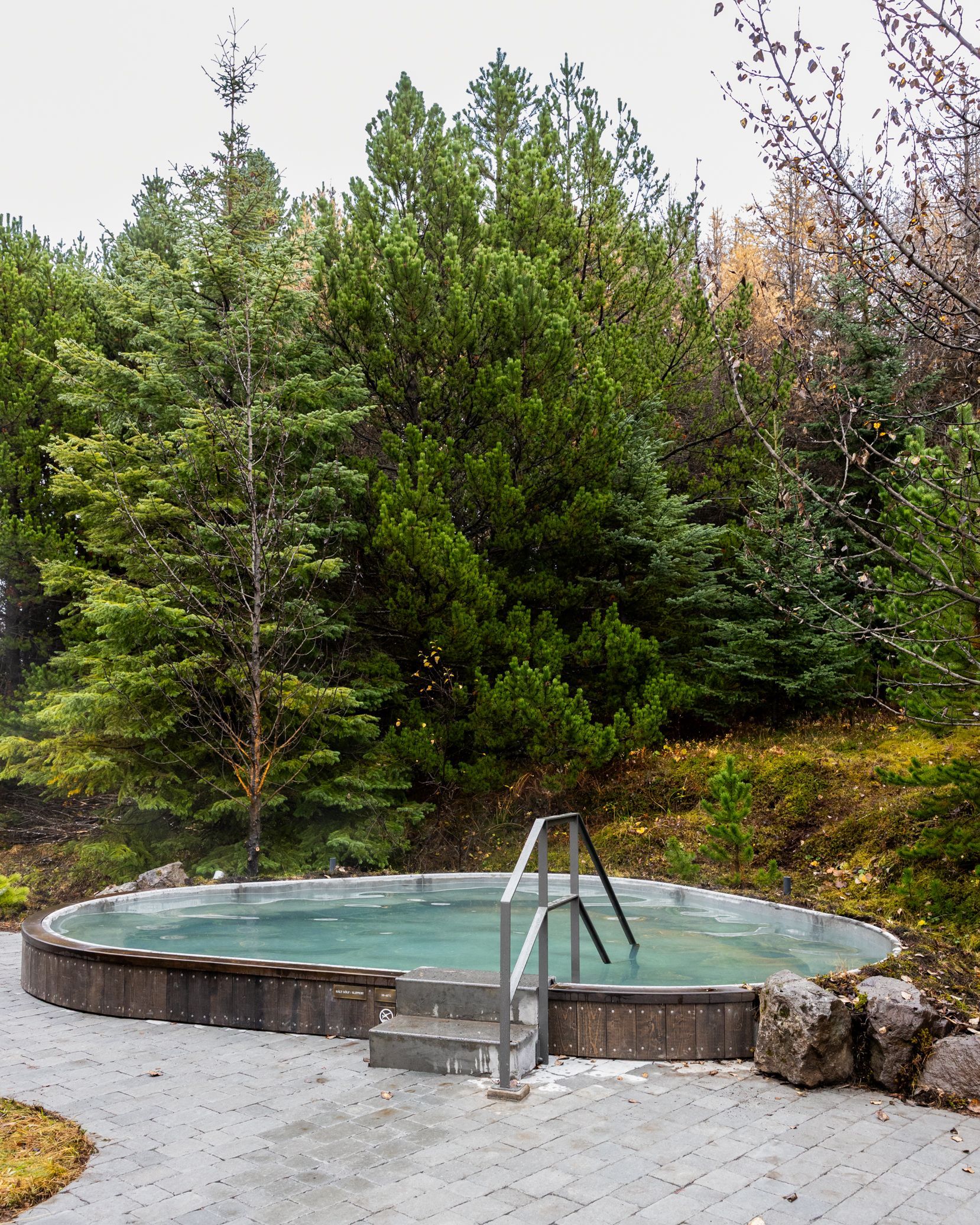 サウナの建物の奥にあるホットタブ Forest poolはこじんまりとしていて木々の横で癒されます。