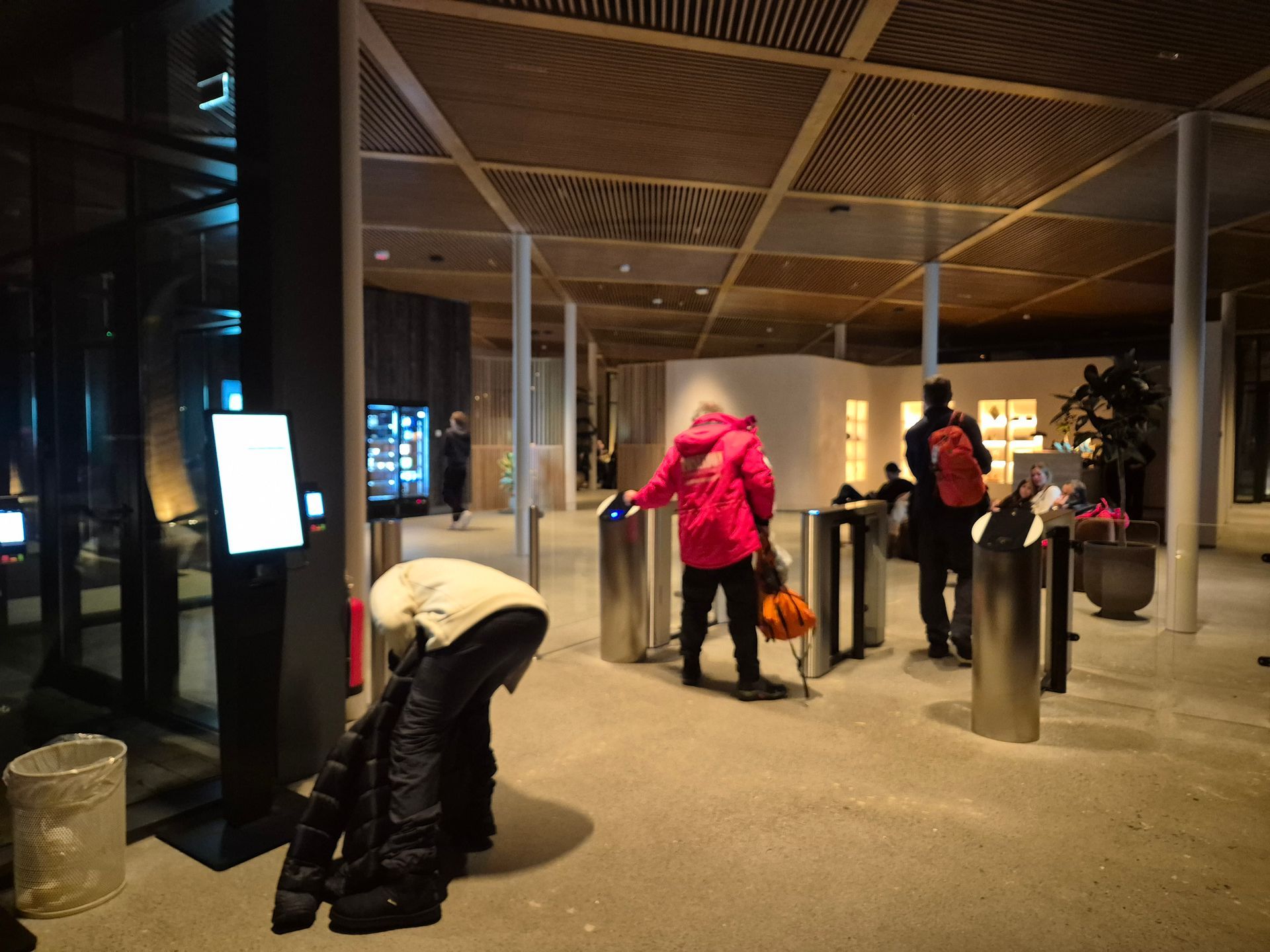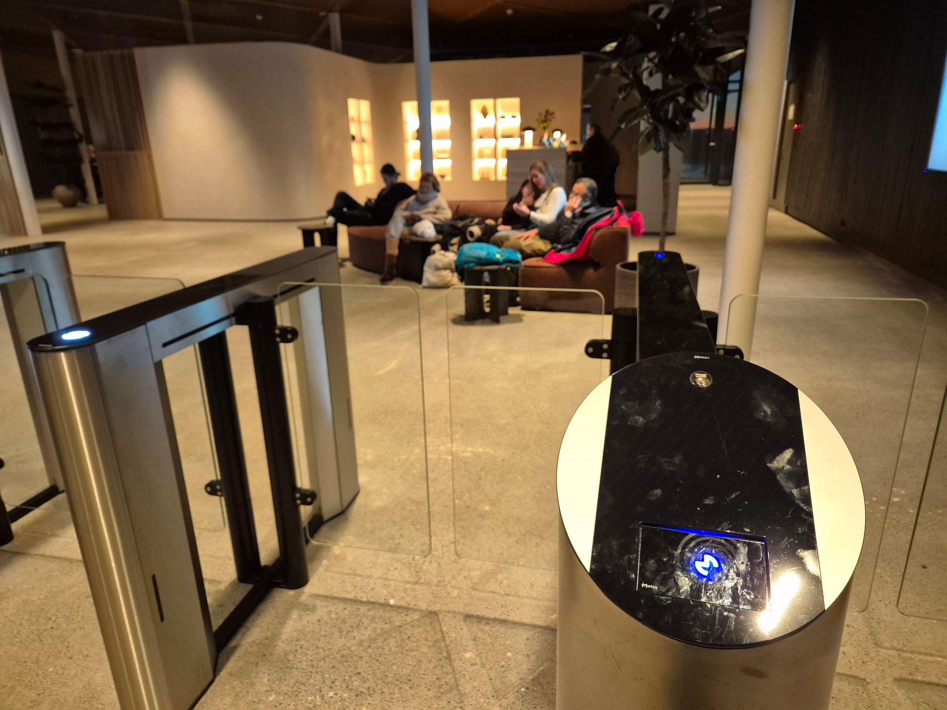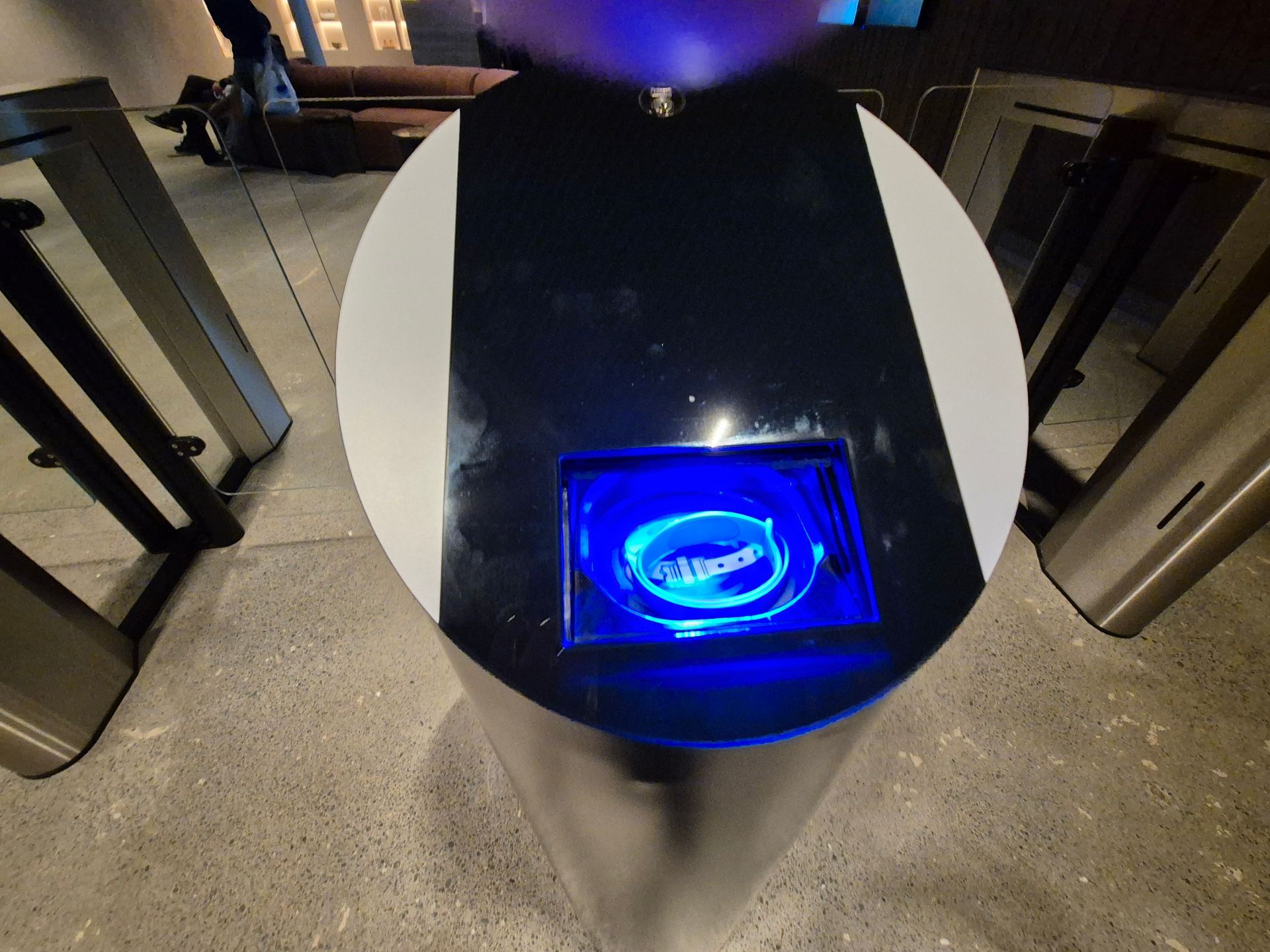 リストバンドをセンサーに当てると蓋が開くのでそこにリストバンドを入れて返却します。と同時にゲートが開くのでロビーに出て終了です。