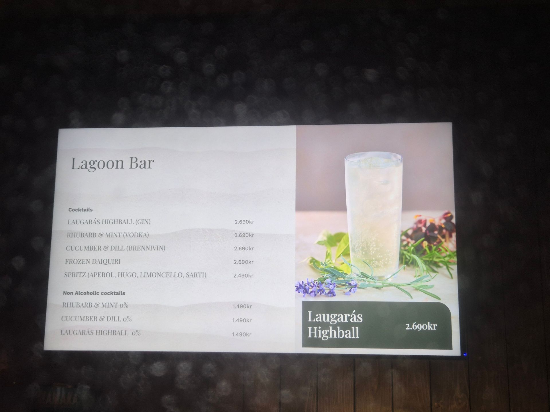 このメニューの他にもアイスランドのビールなど数種類があります。