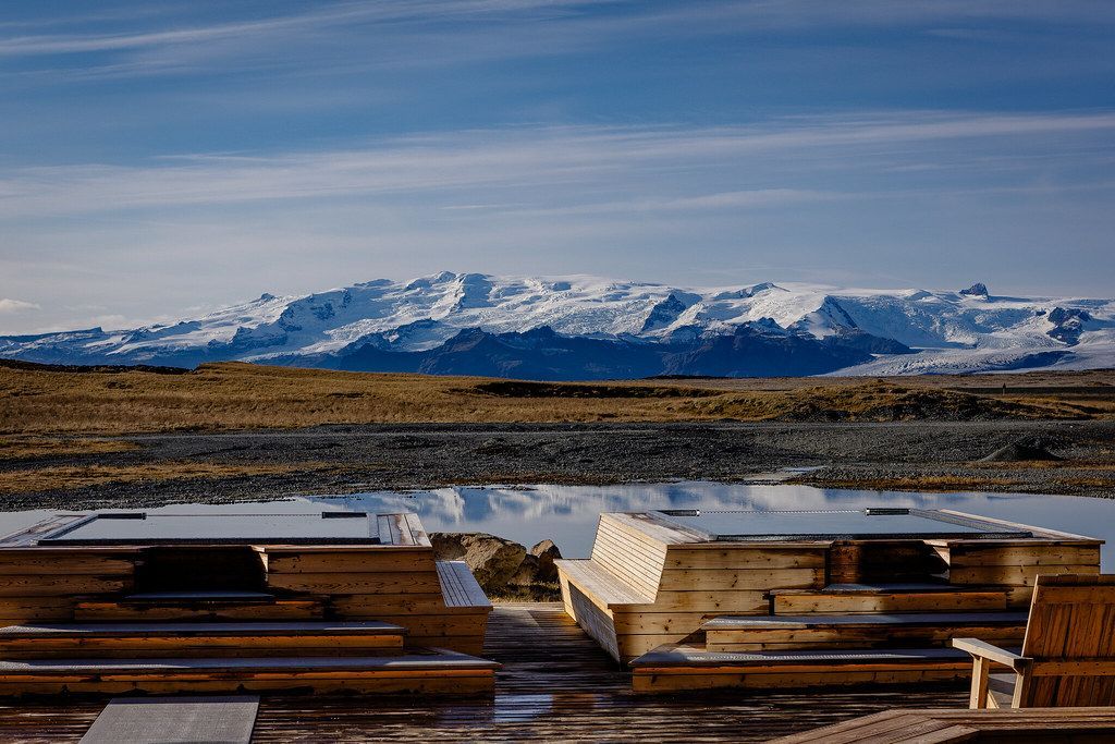 ヨークルスアゥルロン氷河湖の近くにあるホテル。